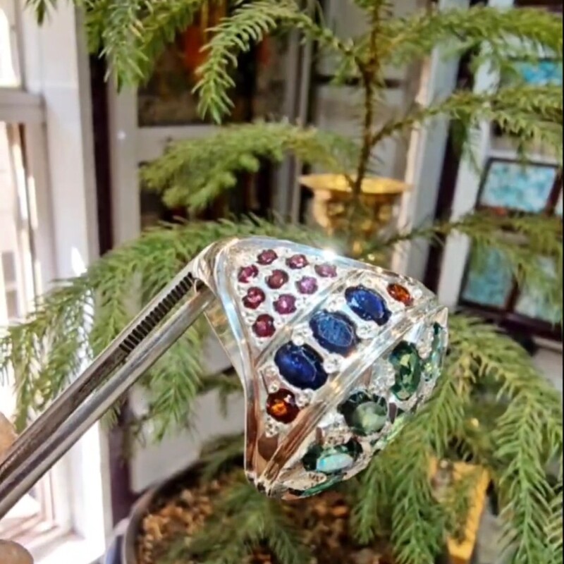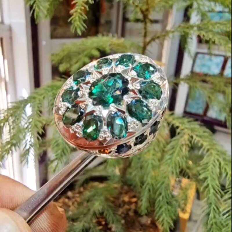 انگشتر توپازسبزاصلی مخراج یاقوت کبودو گارنت اصلی رکاب نقره دستساز نقره عیار 925 ارسال رایگان