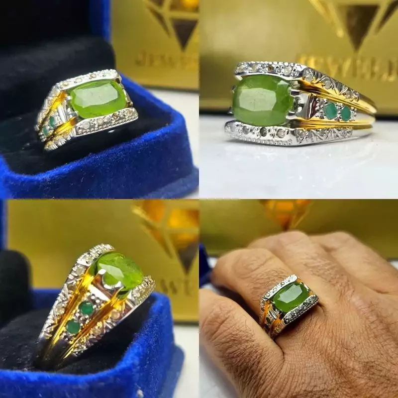 انگشتر زبرجد اصلی مخراج زمردو برلیان اصلی رکاب نقره دستساز نقره عیار 925 ارسال رایگان