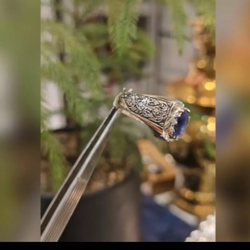 انگشتر یاقوت کبود اصل رکاب دست ساز ومخراج برلیان اصلی نقره عیار 925ارسال رایگان