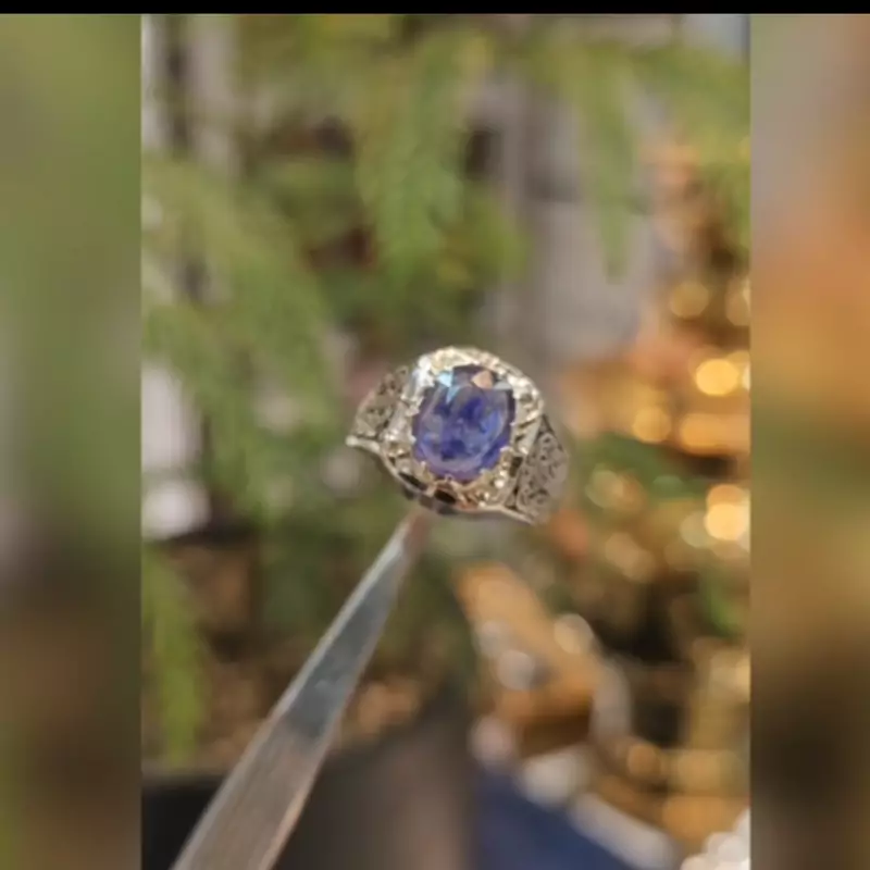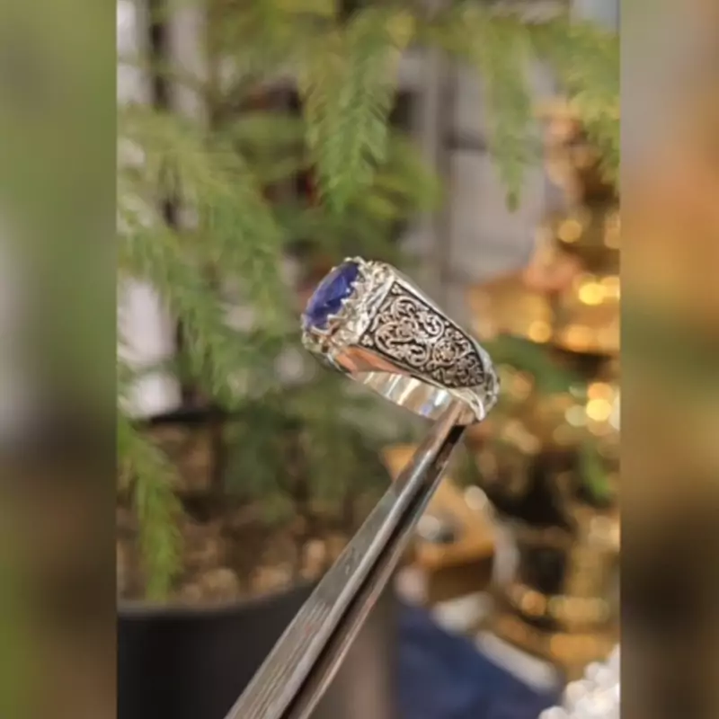 انگشتر یاقوت کبود اصل رکاب دست ساز ومخراج برلیان اصلی نقره عیار 925ارسال رایگان