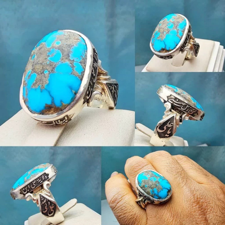 انگشترفیروزه نیشابوری اصلی رکاب نقره صفوی دستسازنقره عیار 925ارسال رایگان
