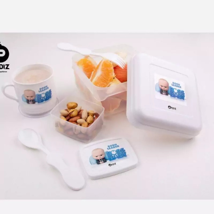 سرویس غذای کودک 5 تکه... شامل دو ظرف درب دار و یک لیوان و یک قاشق و چنگال...