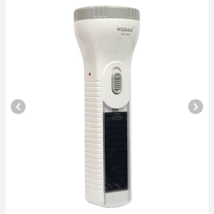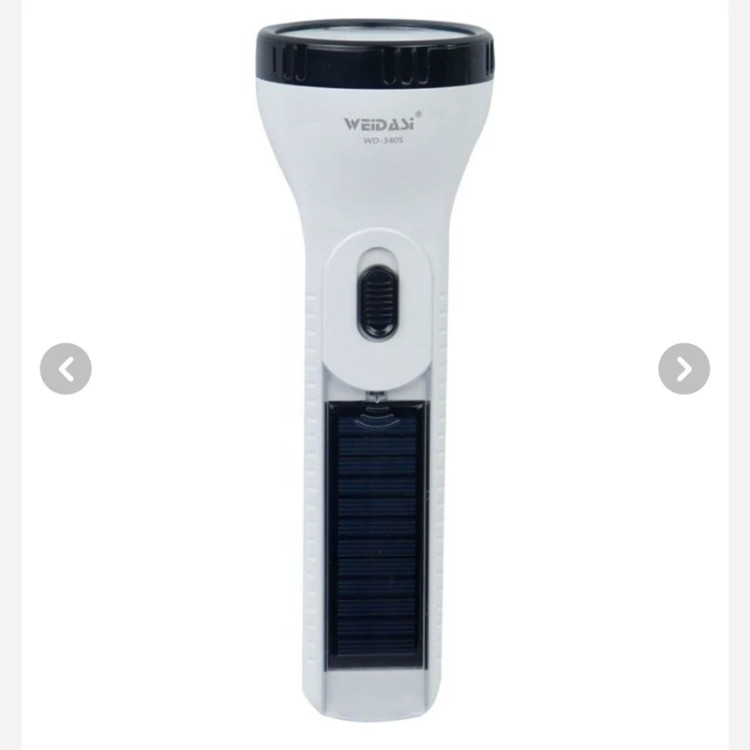 چراغ قوه مدل WD-340S ساخت برند WEIDASI یک محصول کاربردی جهت استفاده در کمپینگ، کوهنوردی، مسافرت، طبیعت گردی و… است. در داخل محفظه چراغ قوه یک عدد لامپ LED تعبیه شده که نور ساطع شده از آن مهتابی بوده و میزان روشنایی به 50 لومن می رسد، همچنین قابلیت تنظیم حالت نوردهی به صورت پر نور و کم نور داشته و توان خروجی کلی آن معادل 1 وات است. چراغ قوه مجهز به یک باتری داخلی با ظرفیت 750 میلی آمپر ساعت می باشد که مدت زمان شارژدهی آن حدود 3 ساعت به صورت نور قوی و 7 ساعت در حالت نور متعادل خواهد بود. محصول بدنه ای از جنس پلاستیک مقاوم و سبک داشته و بر روی آن یک نشانگر LED جهت نمایش وضعیت شارژ قرار داده شده است، پس از اتمام شارژ باتری، قابلیت شارژ مجدد آن به وسیله دو شاخه داخلی تعبیه شده روی محصول با اتصال به برق شهری در طی 9 ساعت وجود دارد. علاوه بر این، از دیگر ویژگی های چراغ قوه WD-340S مجهز بودن به پنل خورشیدی جهت تامین انرژی دستگاه است.