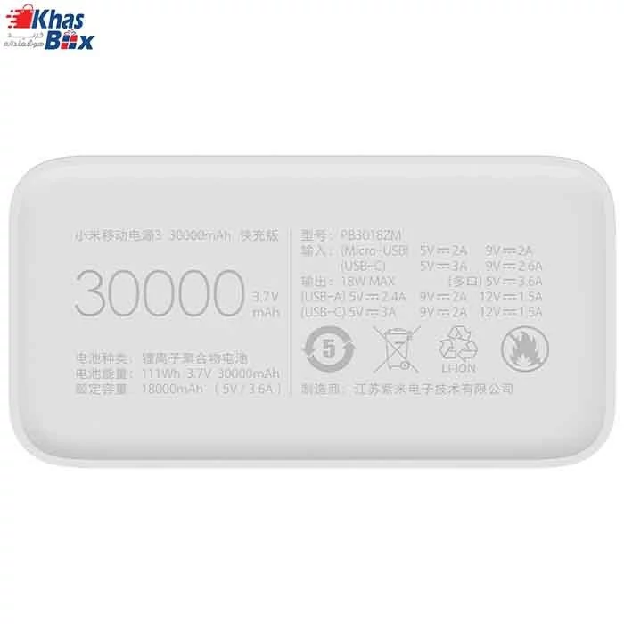ویژگیها و کاربردهای پاوربانک 30000 شیائومی مدل PB3018ZM
