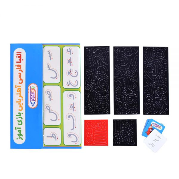 دارای کارتهای کلمات - صفحهی مخصوص - قطعات مغناطیسی شامل حروف الفبای فارسی
