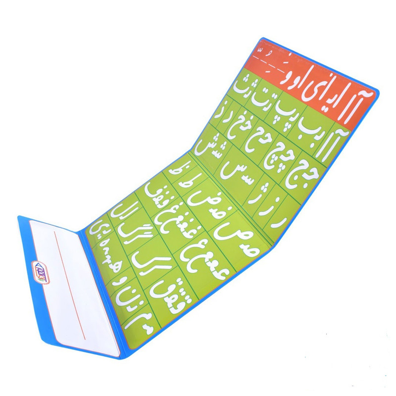دارای کارتهای کلمات - صفحهی مخصوص - قطعات مغناطیسی شامل حروف الفبای فارسی