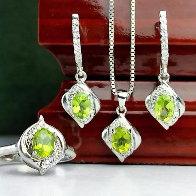 نیم ست فوق العاده زیبا جواهری زبرجد اصلی عیار نقره925