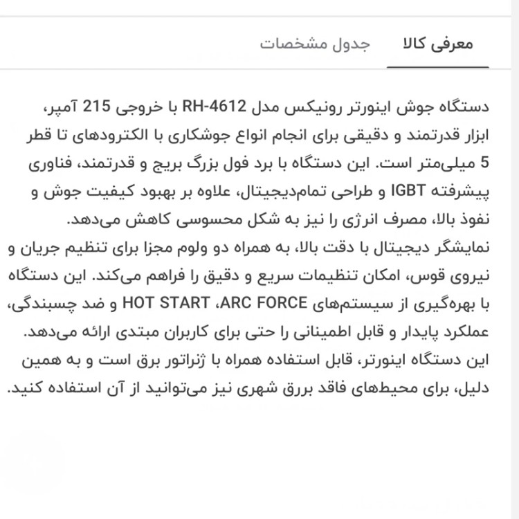 دستگاه جوشکاری اینورتر 215 آمپر مدل 4612 چهل ماه گارانتی شرکتی رونیکس