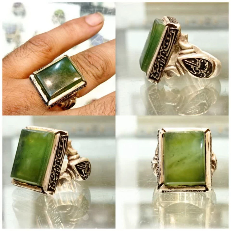 انگشترعقیق سبز یشمی رکاب صفوی دستساز نقره عیار 925 ارسال رایگان