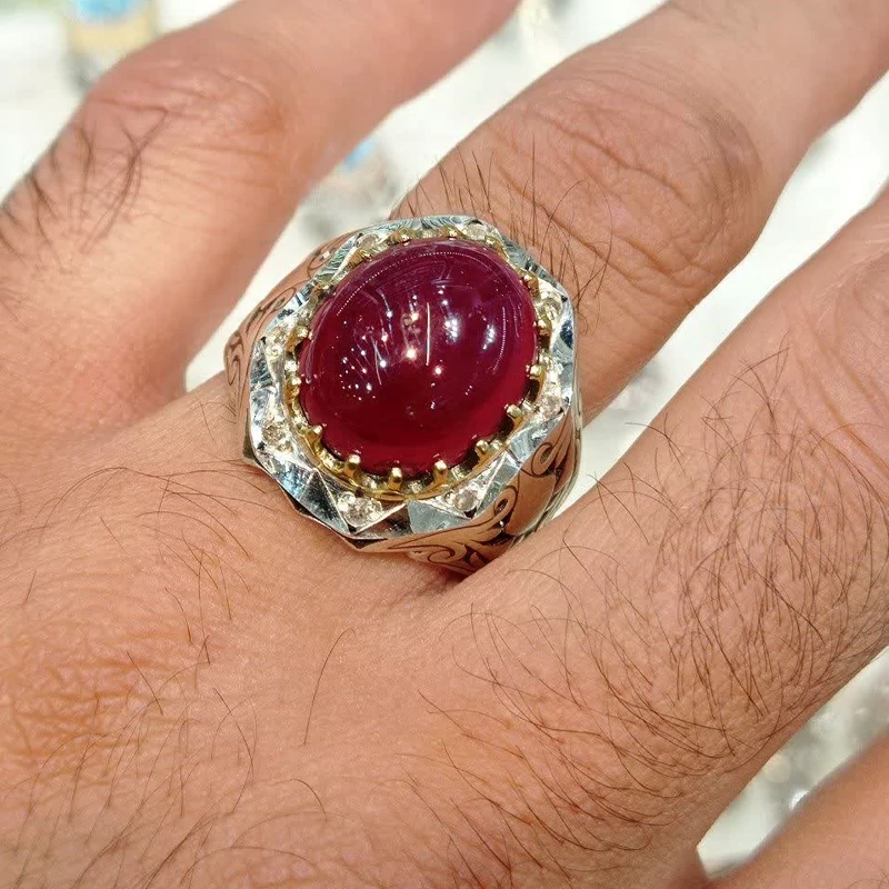 انگشتریاقوت سرخ قرمز دامله اصلی مخراج برلیان اصلی رکاب نقره دستساز نقره عیار 925 ارسال رایگان