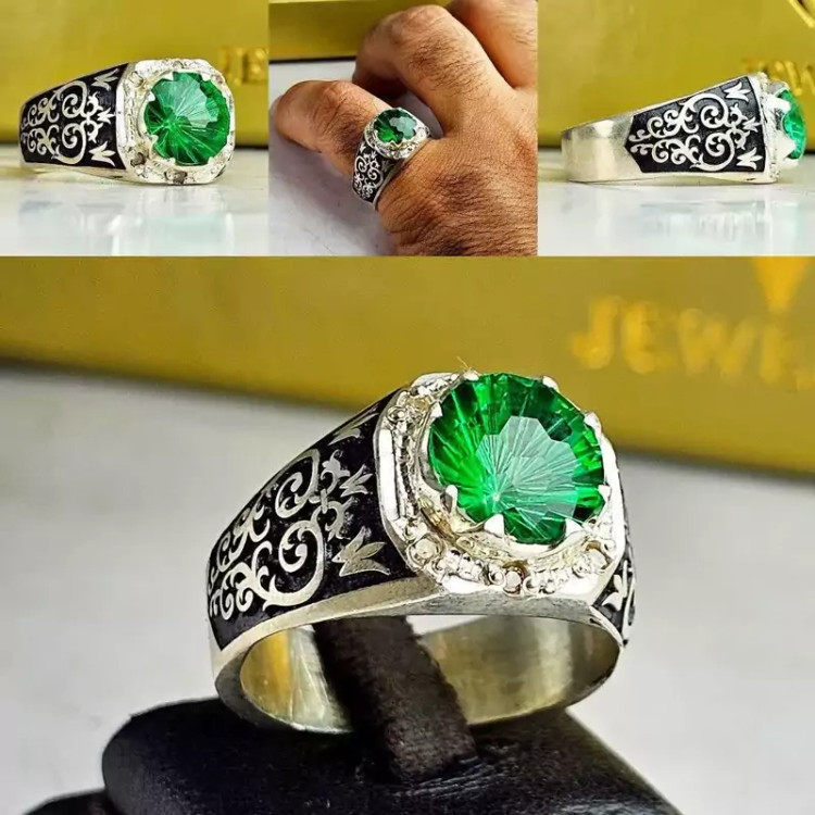 انگشترتوپازسبزاصلی مخراج برلیان اصلی رکاب نقره دستساز نقره عیار 925 ارسال رایگان