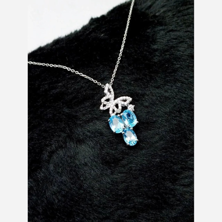 گردنبند مدال توگردنی توپازآبی سوییسی اصلی نقره عیار 925ارسال رایگان