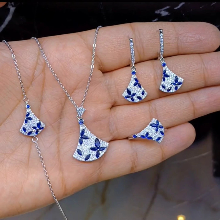 سرویس نقره کامل جواهری نگین های آبی نقره عیار 925ارسال رایگان