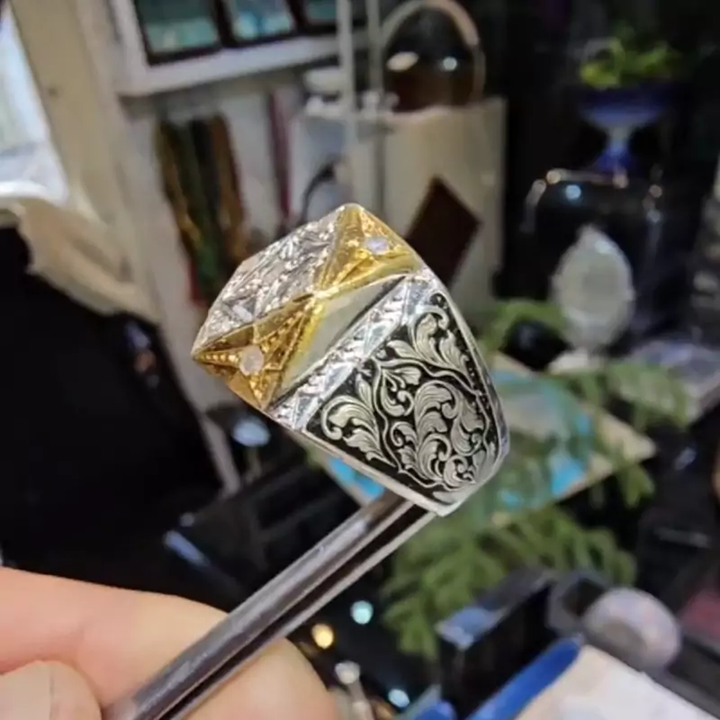 انگشترالماس طبیعی بلریان اصلی رکاب نقره دستساز نقره عیار 925ارسال رایگان