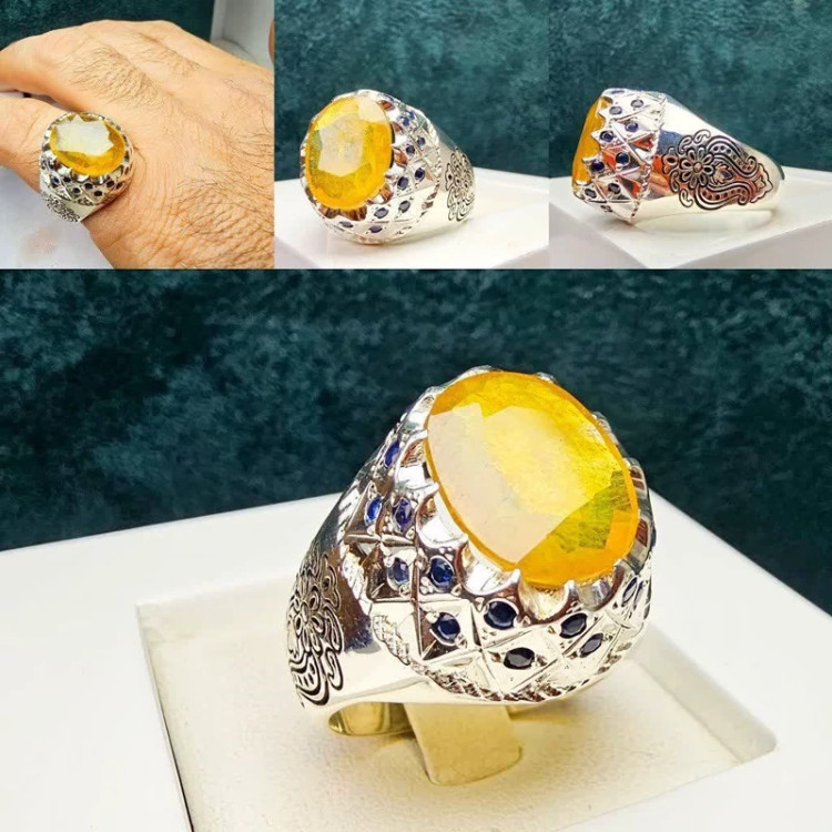 انگشتریاقوت زرد آفریقای اصلی مخراج یاقوت کبوداصلی رکاب نقره دستساز نقره عیار 925 ارسال رایگان