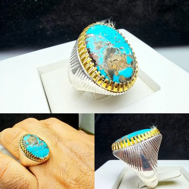 انگشتر فیروزه نیشابور اصلی رکاب نقره دستساز نقره عیار 925 ارسال رایگان