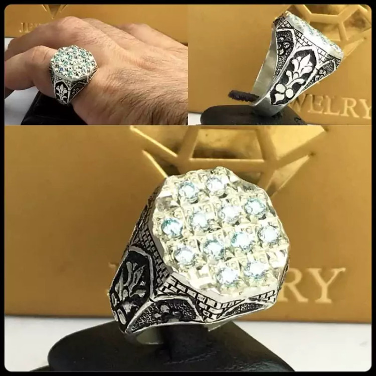 انگشترزیبای 10نگینه موزانایت اصلی رکاب دست ساز ارسال رایگان