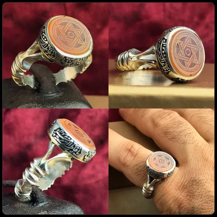 انگشتر عقیق یمن اصلی حکاکی دعای ستاره سلیمان رکاب صفوی دست ساز عیار نقره 925ارسال رایگان