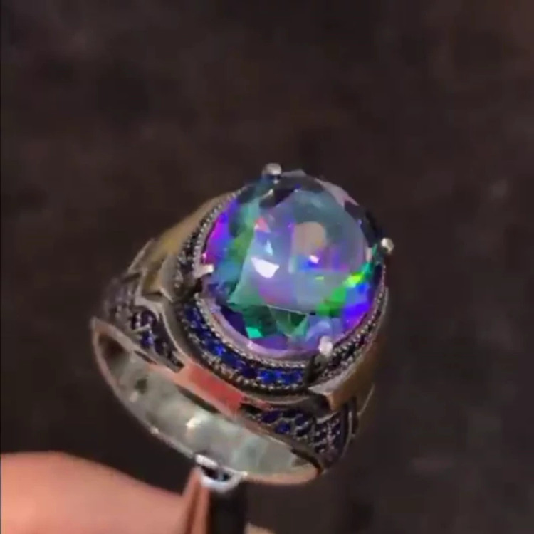 انگشتر زیباتوپاز هفت رنگ رکاب چهارچنگ اسپرت