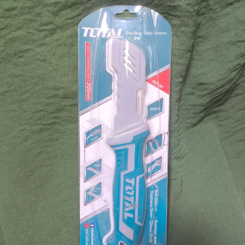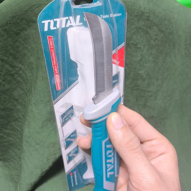 چاقوی پیوند زنی و قلم زنی توتالTOTAL برای کابل بری و الکترونیکی مناسب است یک چاقوی همه کاره دسته محکم و عرق گیر تیغه کربنی و فولادی ضدزنگ دسته ثابت