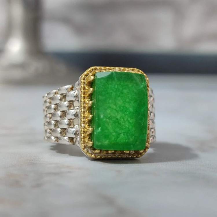 انگشتر نقره مردانه زمرد سبز اصل رکاب رولکسی شیک و جذاب