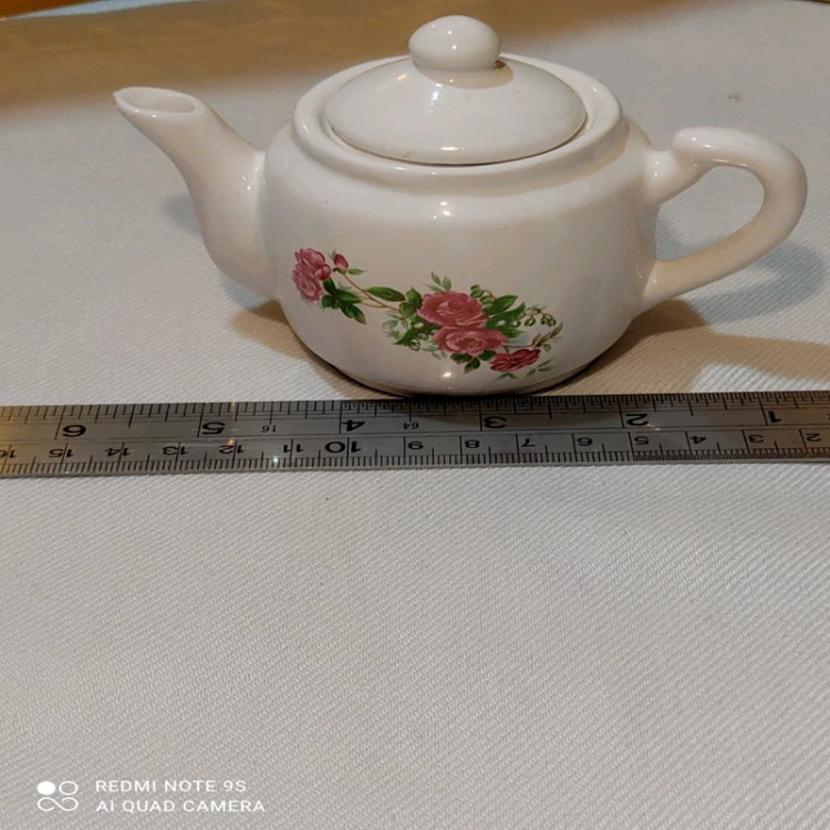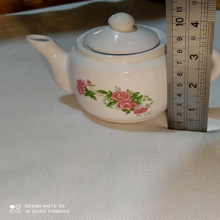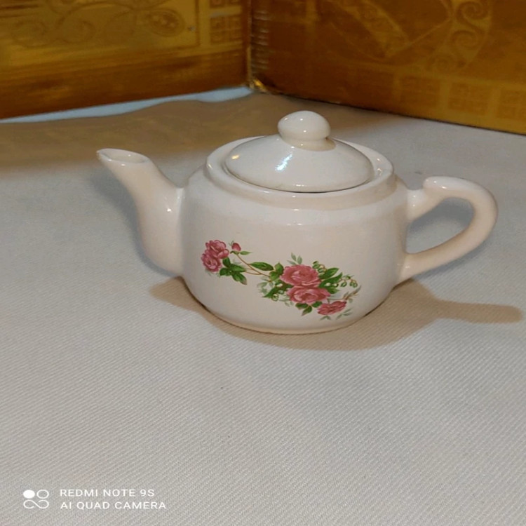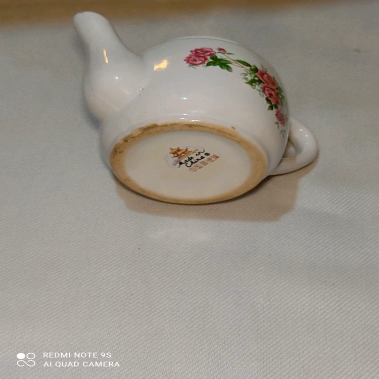 قوری کوچک چینی گلسرخی قدیمی معروف به قوری زعفران نونو و آب نخورده متعلق به عصر قبل انقلاب با مارک چین خیلی قدیمی