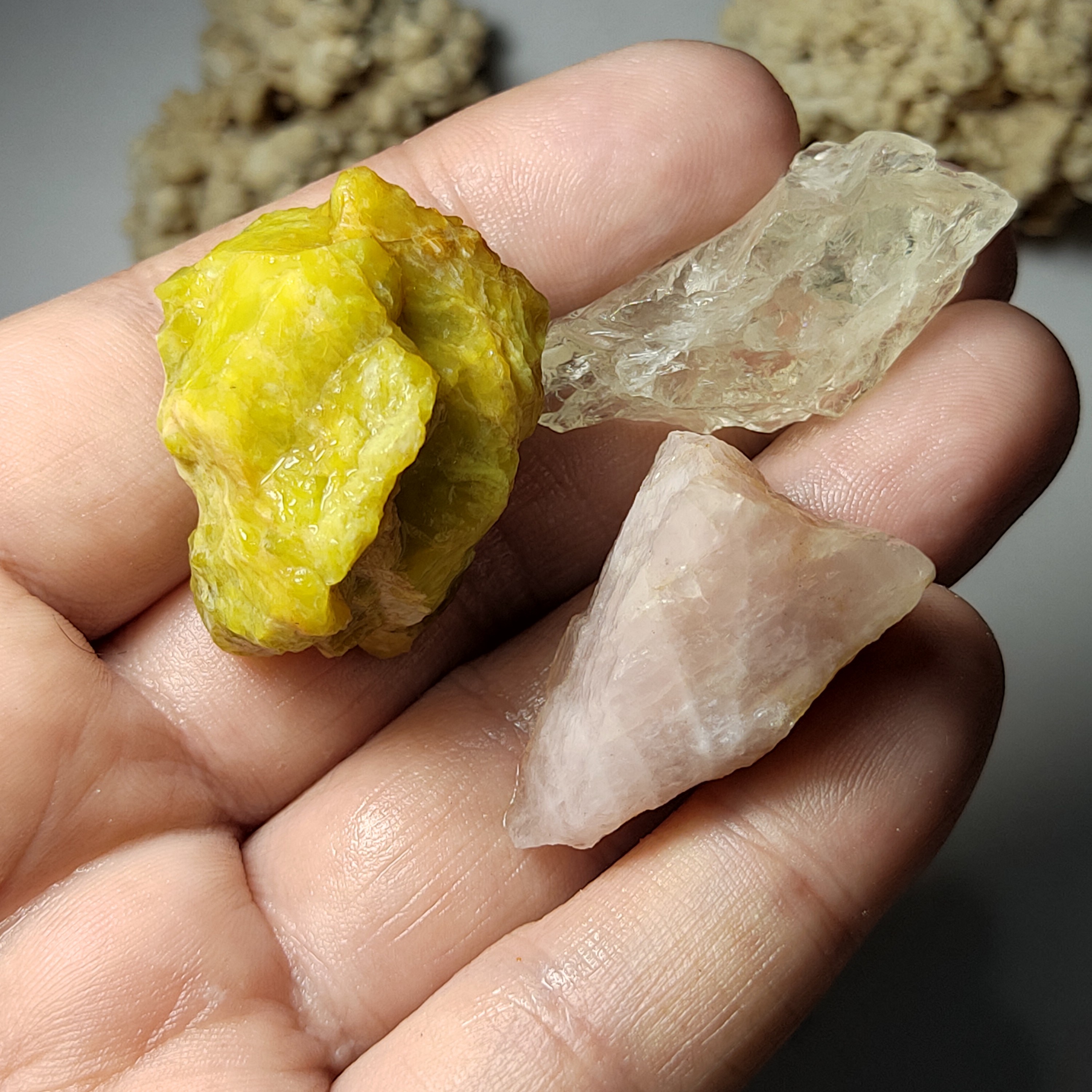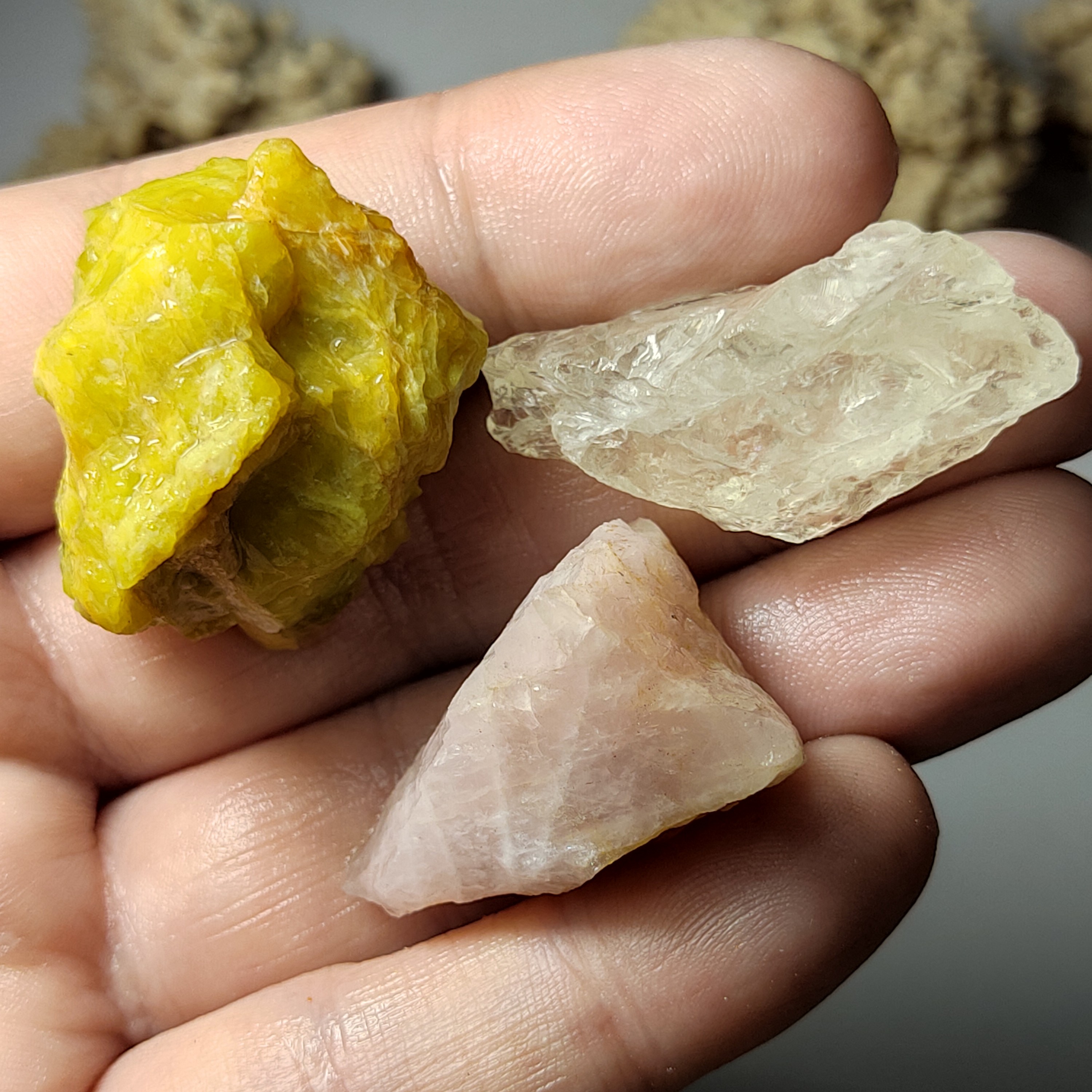 3 حبه سنگ معدنی سیترین و سرپانتین و رزکوارتز بسته انرژی