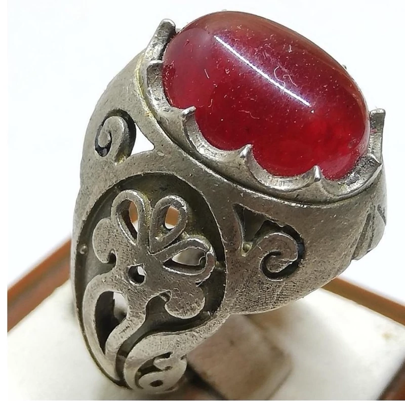 انگشتر رکاب مهردار 925 گارنت سرخ دانه اناری چشم نواز و زیبا