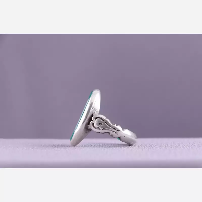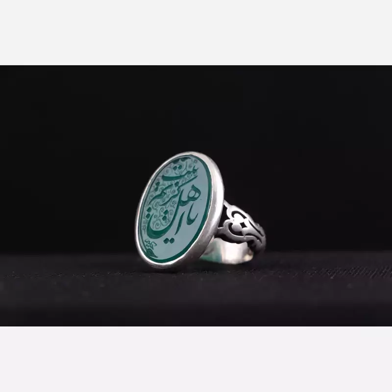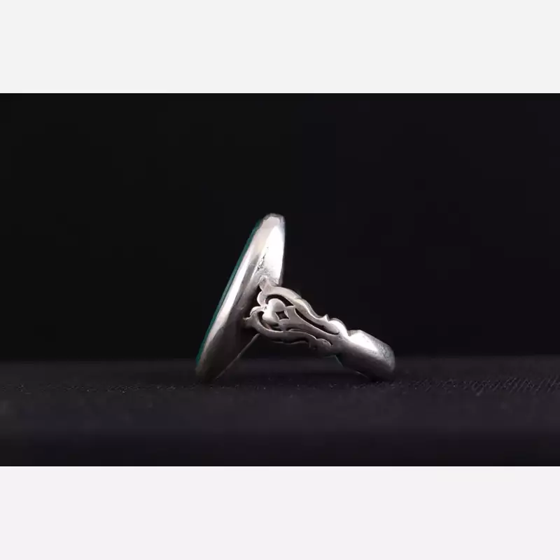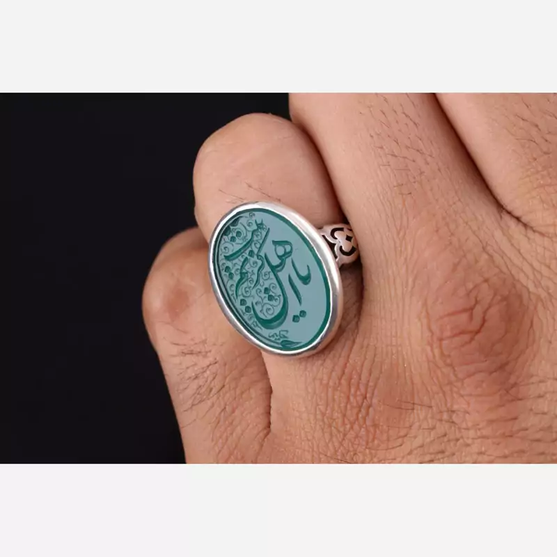 انگشتر نقره مردانه صفوی سیاه قلم عقیق سبز