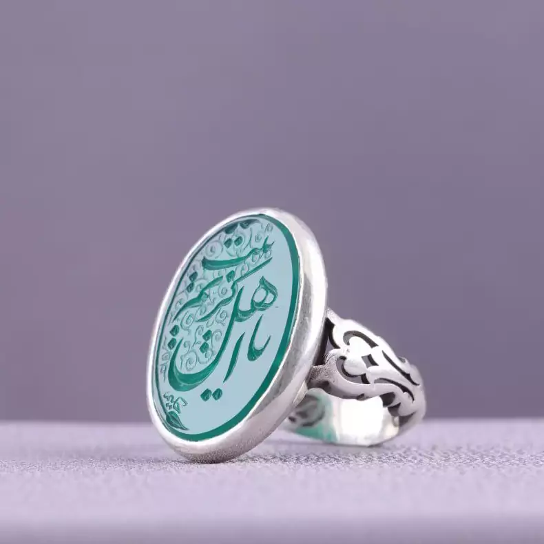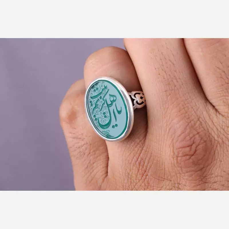نگین آن عقیق سبز اصل با نقش یا کریم اهل بیت است.
