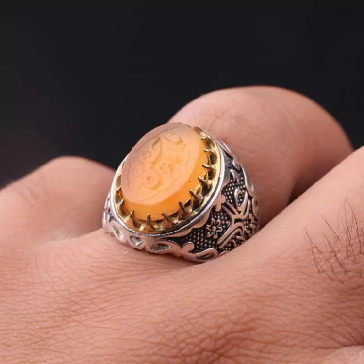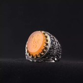 انگشتر عقیق یمنی رکاب تاج برنجی نقش یاامام حسین اصل ( انگشتر مردانه )