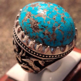 فیروزه این انگشتر تراش دامله و تمام مغز میباشد به رنگ آبی محک.