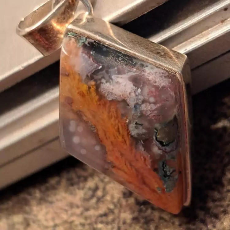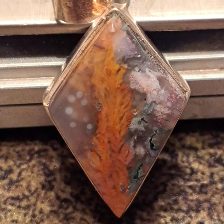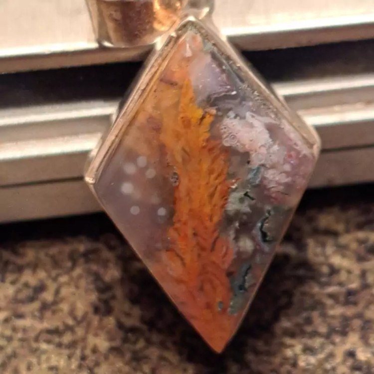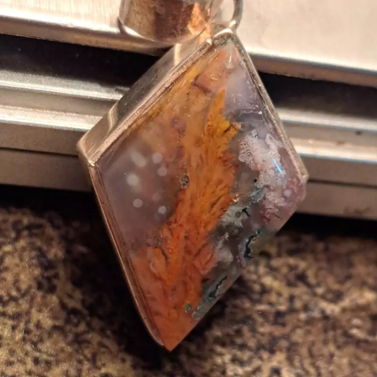 مدال عقیق شجری با طرح بسیار زیبا و خاص با قاب نقره 925 عیار دست ساز شکیل و ساده.