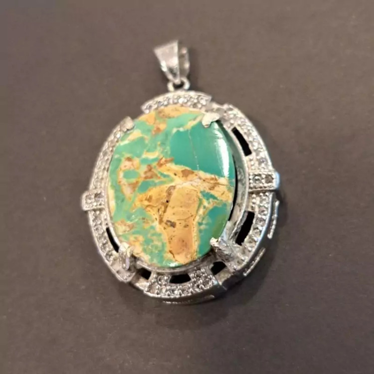 گردنی بسیار زیبا با فیروزه نیشابور و نقره 925 عیار.