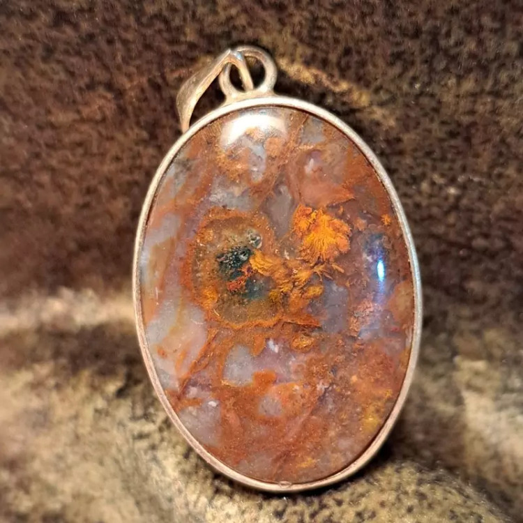 مدال عقیق شجری با طرح بسیار زیبا و خاص با قاب نقره 925 عیار دست ساز شکیل و ساده.