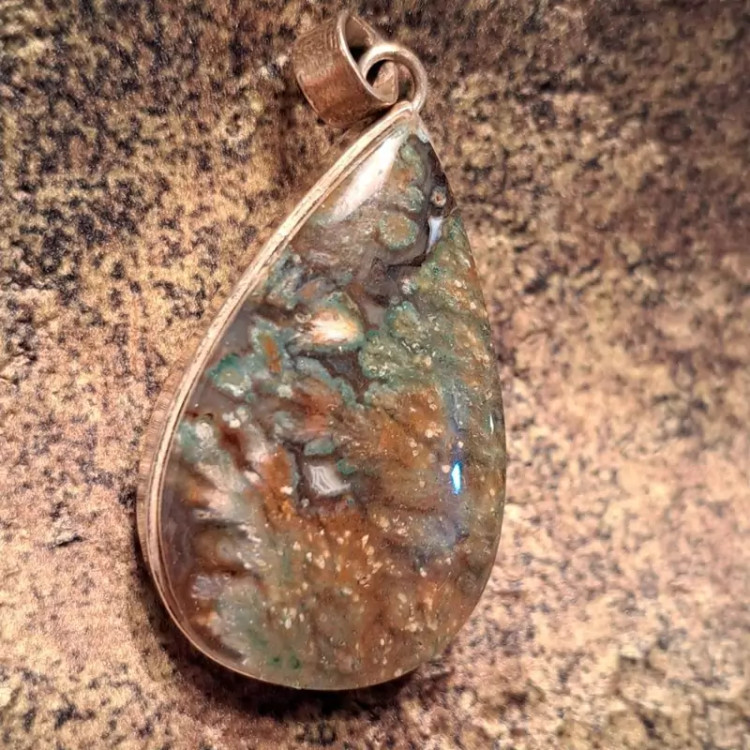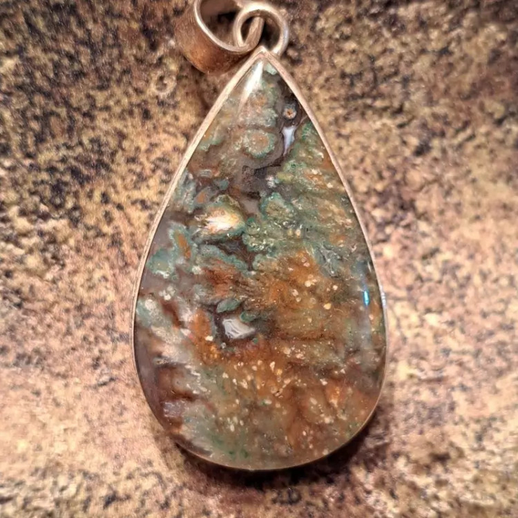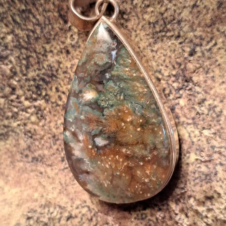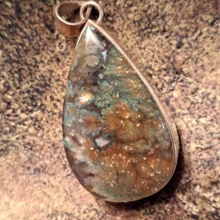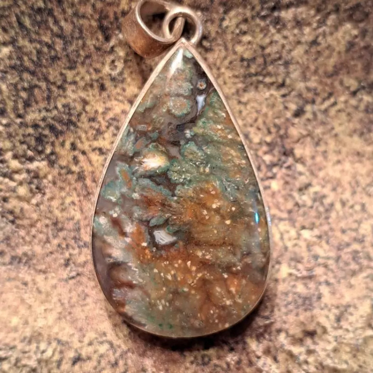 مدال عقیق شجری با طرح بسیار زیبا و خاص با قاب نقره 925 عیار دست ساز شکیل و ساده.
