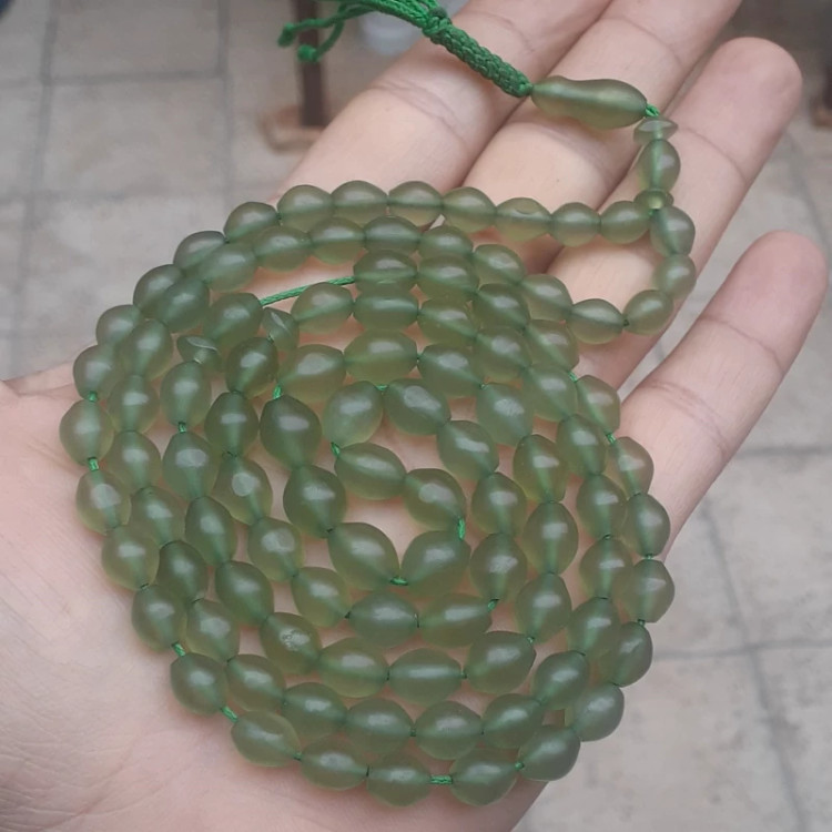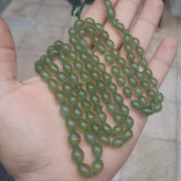 تسبیح شاه مقصود افقان تراش دقیق و منظم رنگ زیتونی آبدار و نخ نما بلند و خوشدست بدون ترک و شکستگی یکدست وتضمینی
