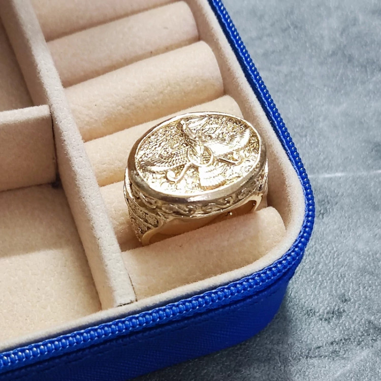 انگشتر فروهر تمام طلایی بیضی،انگشتر تمام طلایی فروهر مردانه،انگشتر مردانه تمام طلایی فروهر