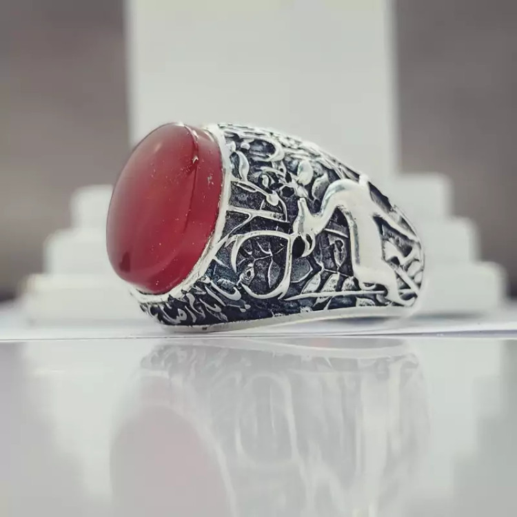 نگین عقیق سرخ یمانی اصل و معدنی با رکاب نقره مردانه