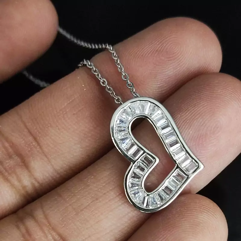 گردنبند قلبی نگین باگت،گردنبند قلبی نگین دار،گردنبند فانتزی