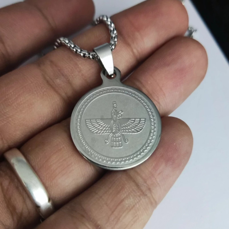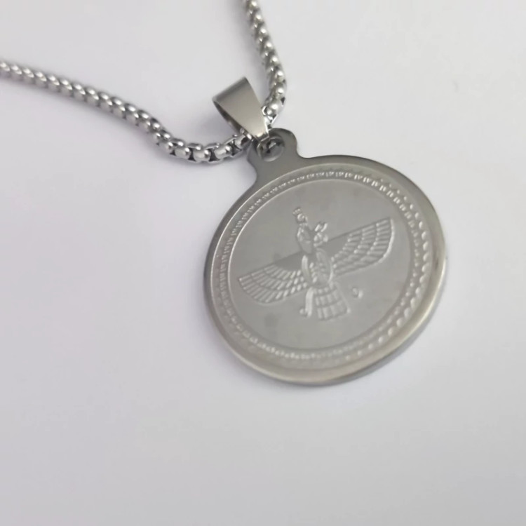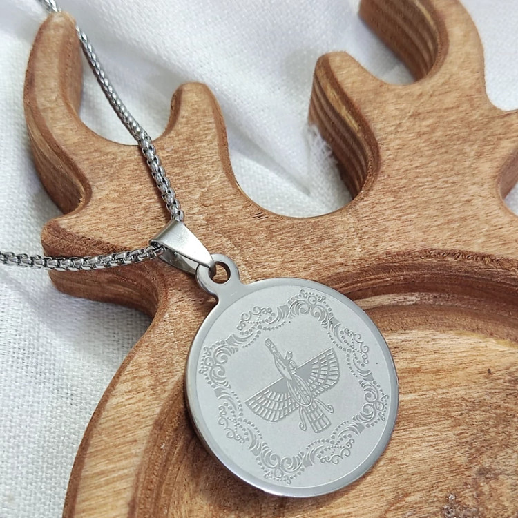گردنبند فروهر گرد استیل،گردنبند فروهر برجسته،گردنبند هخامنشی