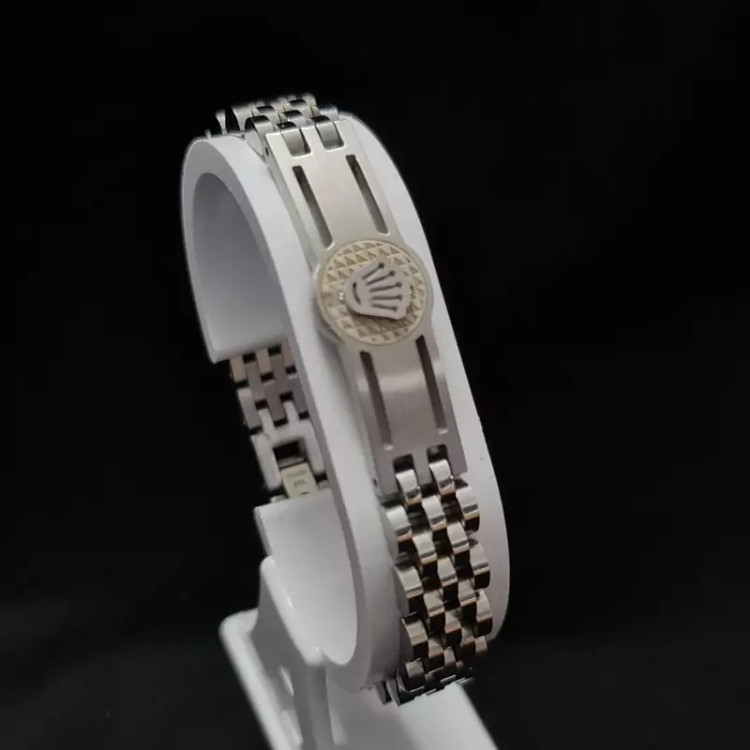 دستبند رولکس پلاک دار نقره ای 10میل استیل