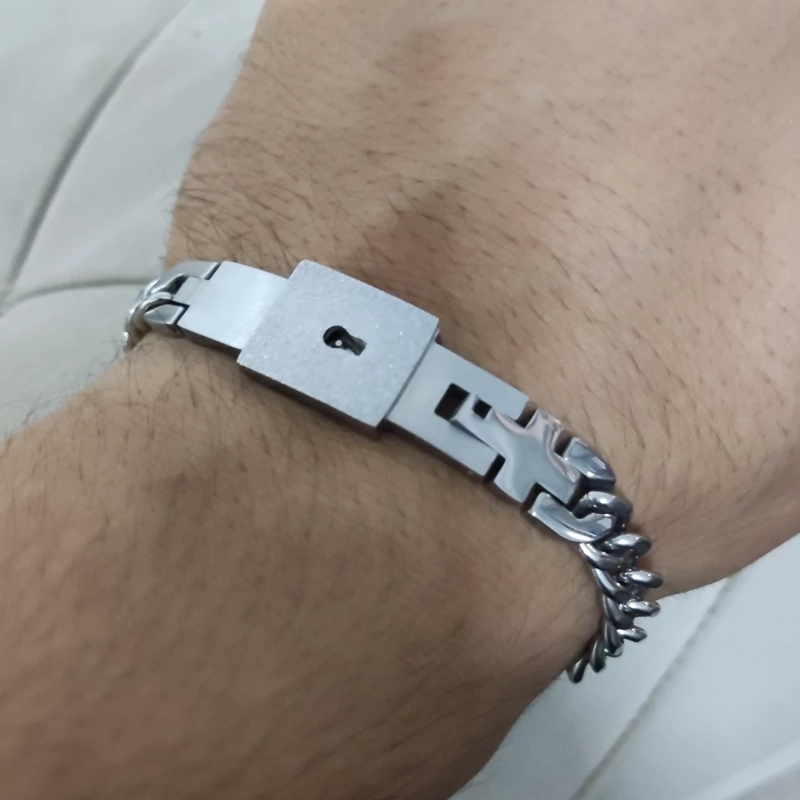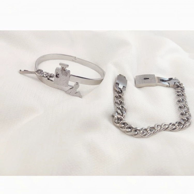 ست دستبند زنانه و مردانه استیل با کلید