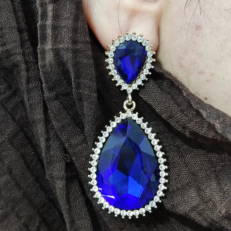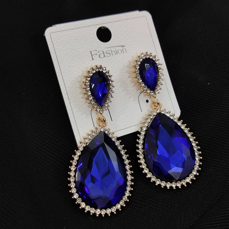 گوشواره مجلسی پرنگین آبی رنگ ثابت