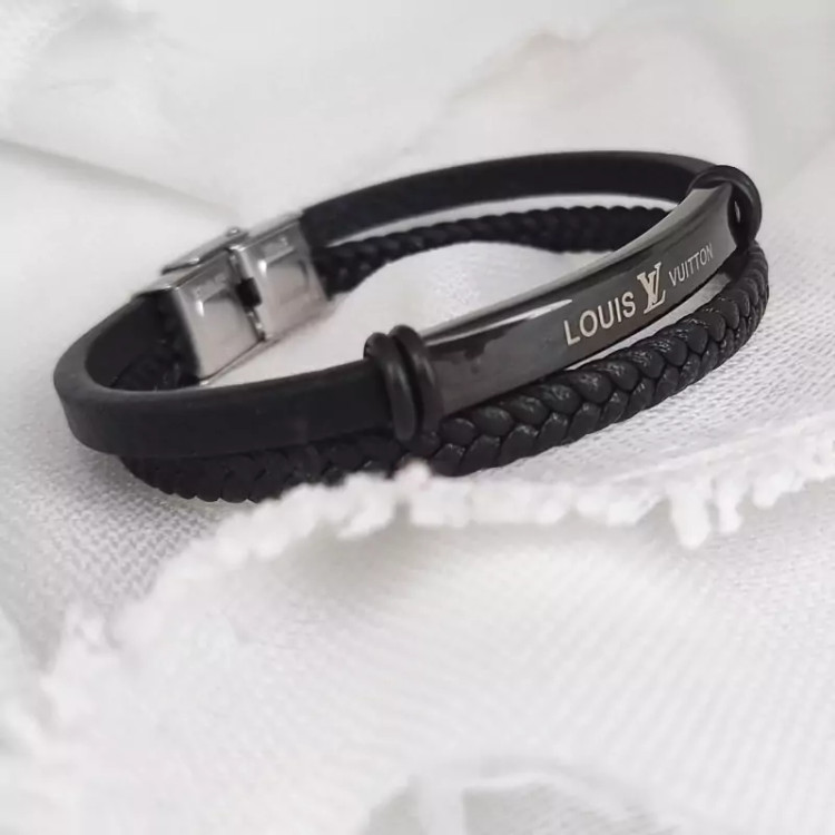 دستبند چرمی لوویس ویتون 2رج مشکی،دستبند لوییس ویتون چرمی 2رج مردانه