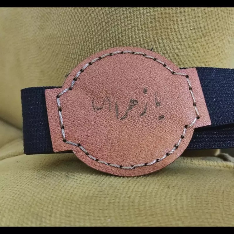 بازوبند چرمی طرح گرد به قطر ۵سانت بهمراه حرز چاپی امام جواد که پشت کار باز بوده و میتونید هر دعایی که خواستین بزارین