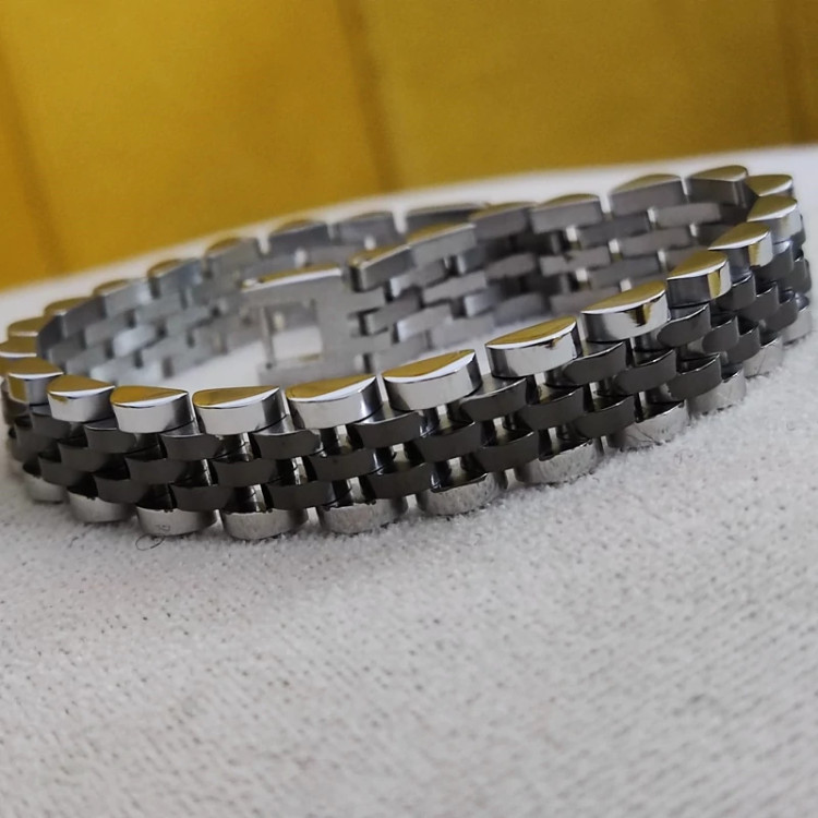 دستبند رولکس مشکی نقره ای استیل اصلی