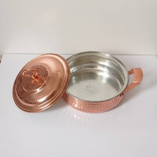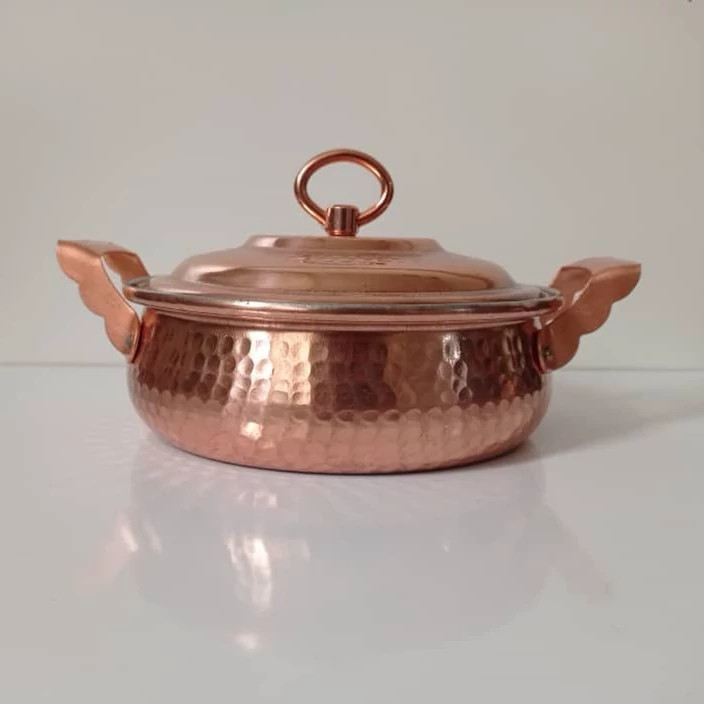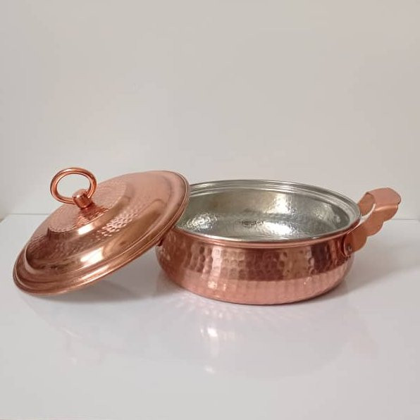 باعرض سلام خدمت مشتریان غرفه مسگران زنجان، امروز قصد معرفی محصولی پرکاربرد در اشپزخانه را داریم . محصول مورد نظر ما ماهیتابه مسی درب دار است ،در همه اشپزخانه ها ماهیتابه وجود داره و برای راحت سرخ کردن غذا ماهیتابه بهترین وسیله است و يکي از پرمصرفترين ظروف در هر آشپزخانهاي ماهيتابه است. بيشتر غذاهاي ايراني بايد خوب سرخ شوند تا خوش آب و رنگ به نظر برسند. این محصول باتوجه به داشتن لبه های بلندتر سبب می شود که روغن به بیرون از ماهیتابه نریزد و محیط پیرامون اشپزی شما کثیف و روغنی نشود، باتوجه به سایز این ماهیتابه مسی میتوانید انواع خورشت ها را در ان طبخ کنید همچنین ظروف مسی از خاصیت های مفیدی برای انسان دارد که در ادامه توضیحات به گوشه ای از ان خواهیم پرداخت. نه تنها قابلمه و ماهیتابه های مسی در اشپزخانه ها جذاب هستند ، بلکه مس هدایت کننده و منتقل کننده عالی برای گرما است و برای پخت و پز در میزان بالا بسیار عالی است ، اشپزها اغلب از قابلمه ها و ماهیتابه های مسی برای تهیه سس ها و غذاهایی که نیاز به دمای به شدت تحت کنترل دارند استفاده می شوند. قابلمه ها و ماهیتابه های مسی با قلع یا استیل ضد زنگ پوشانده می شوند ، بنابراین مصرف کنندگان نیاز نیست نگران مسمومیت با مس باشند و با اسودگی خاطر از ان استفاده کنند. و نیز این محصول از دستگیره های مقاوم در دو طرف ماهیتابه برخوردار است که شما میتوانید با اطمینان ان را جابجا کنید. برای افزایش طول عمر مصرف این دسته از ظروف بهتر است از روش های شستشوی ملایم استفاده کنید به این روش که تا حد ممکن بعد از هربار مصرف ظروف مسی را با یک اسفنج نرم و صابون ظرفشویی واب ولرم بشویید. به طور کلی این بهترین روش شستشوی روزانه محصولات و ظروف مسی است. هرگز ، هرگز ظروف مسی را داخل ماشین ظرفشویی قرار ندهید و یا برای شستشوی این ظروف از مواد شوینده قوی مثل وایتکس ویا شوینده های چندمنظوره استفاده نکنید . اسفج هایی که جنبه سایشی دارند برای این ظروف مناسب نخواهند بود.
