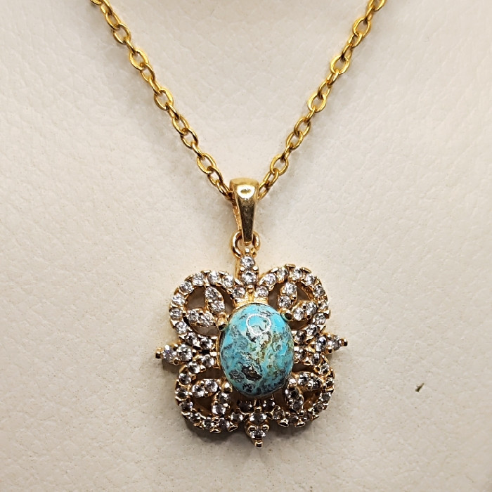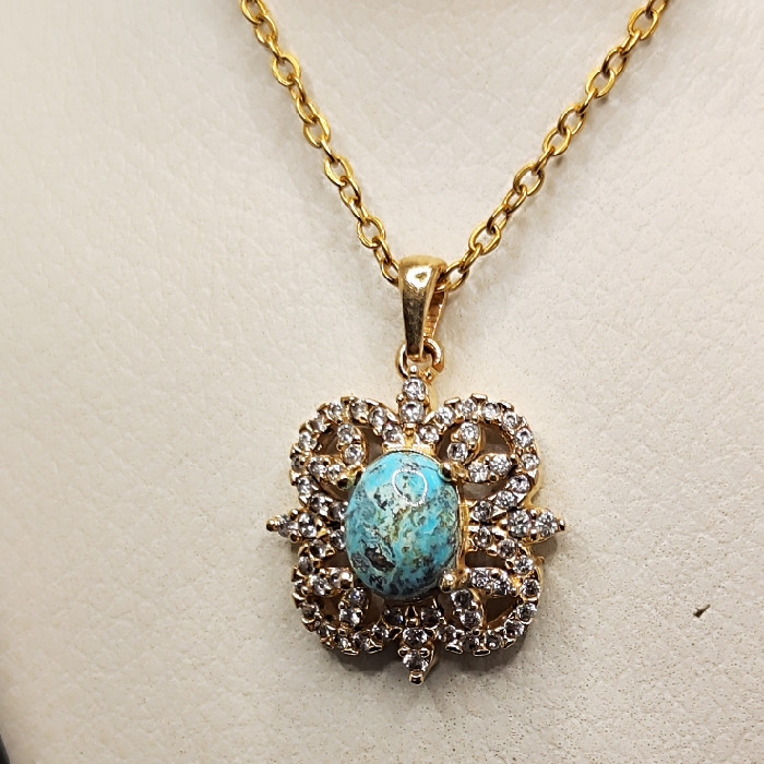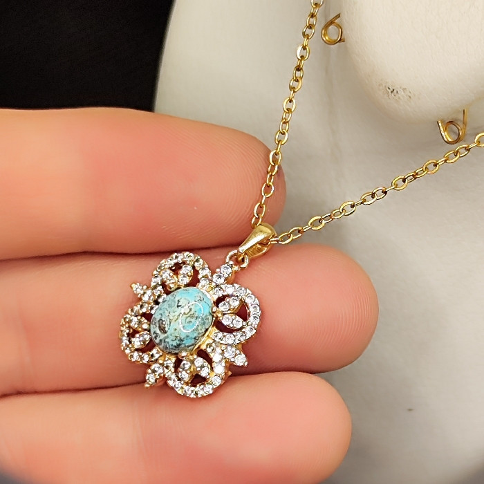 گردنبند زنانه مدل سنگ فیروزه کد 3800