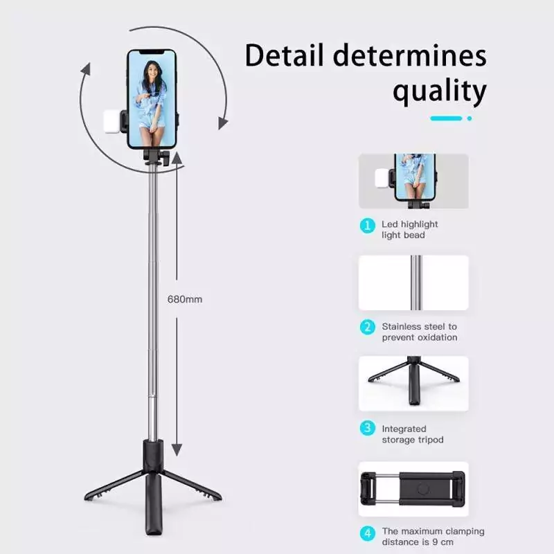 آیا دوست دارید از خود عکس بگیرید اما نمی خواهید فقط به قابهای باریک محدود شوید؟ آیا شما اغلب مسافرت می کنید و به دنبال یک دستی سلفی هستید که در کوله پشتی جای بگیرد و فضای زیادی را اشغال نکند؟ ما چیزی برای شما داریم! بسیار مفید و جمع و جور است و به همین دلیل در هر جیبی جای می گیرد. می توان آن را به سرعت به یک سه پایه مونتاژ کرد و بنابراین ضبط های بدون لرزش را تضمین می کند ، که به لطف کنترل از راه دور بلوتوث مدیریت آن آسان می شود.